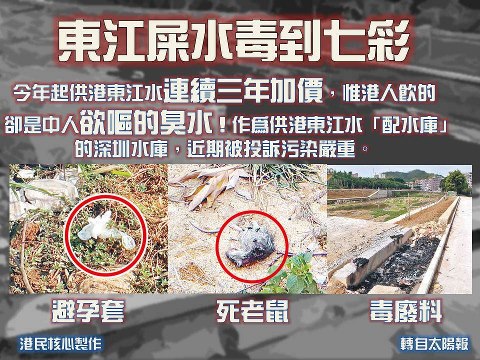 今日香港,卻充斥這種「加五蚊送汽水」的古怪邏輯。明明是一手交錢一手交貨,卻總有人形容那瓶價值五大元的可樂是「贈送」的,忘記自己其實為它掏了錢,將國家民族倫理關係與正當買賣混為一談。有些人大言不慚地說,大陸不關照香港,香港便會完蛋,斷水斷糧,七百萬人只能坐困愁城,無處可逃——在2011年,香港政府與廣東省政府就根據協議簽訂了新的合約,固定總金額是2012年繳付35億3870萬元、2013年繳付37億4330萬元、2014年繳付39億5,934萬元。只要留意東江水輸港的政策,就可見是兩地政府簽了白紙黑字合約協議其中一方以數以十億計的真金白銀購買東江水。部分熱衷於中港友好的人完全無視商業買賣的本質,高舉「關照」的說法,自己感恩戴聽大叫愛黨之餘,還勸身邊人一起感恩戴德,是令人難堪的。