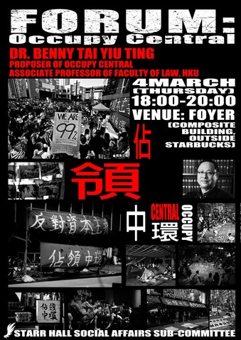 在校園內接觸過戴耀廷三次,印象很難是壞的,因為他溫和有禮,一副知識分子的風度翩翩,分明是中產基督徒,一家三或四口樂也融融,教導女兒是只講道理絕不動粗拿藤條那類型。第一次,他單向演講,簡述他的「佔領中環」計劃,第二次跟第三次設有問答環節,他跟觀眾對談了。坦言,我對他的期待值一次比一次低,到了第二次出席座談會之後,其實已經對他失去興趣,最近的一次只因充撐場面而到場。究其原因,只有兩個,一是他欠缺演講魅力,二是他的計劃不切實際。