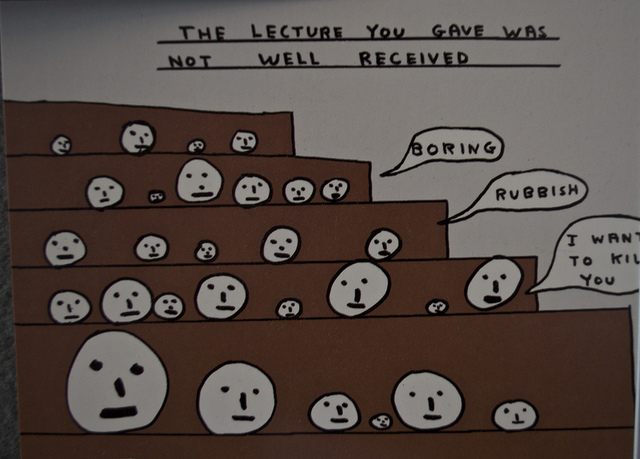 「鳩interactive」以外,以常識充當知識更是一大問題。好些教授不但在上了一整個學期之後仍然認不出自己的學生,更會假設學生是白癡,分享些簡單不過的資訊,徒令學生對他們更無好感。我曾上過一些教授專門邀請客席講者來以講座形式授課的課堂,他為知名國際知名IT界龍頭企業工作,還在開講之前叫大家不要錄音錄影,為大家的失去耐性和以為他會有內幕消息分享的期望,製造好大一個希望。結果,他都在說一些讀過通識的中學生都知道的東西,例如Youtube 禁制色情內容,例如所謂互聯網令整個世界更自由有其規限性,和分享一些我們自己也可以上網搜尋得到的透明度報告,而沒有實際舉例自己如何在公司提供盡量多的資訊而政府審查資訊之間如何斡旋。全程最獲益良多的,就是他播了一段提供大量研究數據支持片內講者論述的TED Talk。所有分享,真係唔講都唔知,多謝夾盛惠。