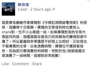 其次,「口裡說不,身體卻很想要TVB」和「關一天電視,成本很低,是值得打上Facebook炫耀的事跡」這兩句的重點,其實在於諷刺那些猶如到維園出席六四晚會口公打卡的人的人們,他們只為扮作關注時事而忽然正義地勸人又自覺地關電視,而非糾纏於甚麼時候才准重開電視機。大部分人都有往道德高地站的傾向,就算愚昧至極,亦懂得「西瓜靠大邊」。當香港已經步入了以看無線劇集為恥的時代,批評和抵制無線,自然成了一件在Facebook活躍階層之間相當政治正確的義舉。而在這多事的十一月,抵制無線,代價尤其低廉——人們用不著走上街頭引火自焚來強調自己的明智,只須安坐家中,就能迅速的跟社會連成一線。這種社會學入門級的行為心理分析,應該用不著動不動就要「大師」講述才能點明。