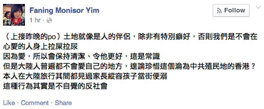 因為中國人(又)隨處便溺的事件急速發酵,我無可避免地跟在港中國留學生屢次短兵相接,也在天涯論壇觀摩了好些反智言論。中國人為自己同胞護短,我無話可說,畢竟,人本偏心,何況價值觀被完全扭曲,他們也算是受害人。也許因為出醜的是自己同胞,或因為自己也與同胞一樣會隨處便溺,捍衛同胞當眾痾屎的權利,也算是捍衛自己的,那種盲目就比較說得過去。